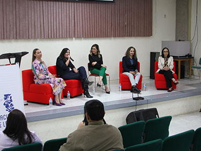El panel reunió a destacadas académicas de distintas facultades de la UJED: la Dra. María Eugenia Campos Zavala, de la Facultad de Derecho y Ciencias Políticas; la Dra. Alicia Solís Campos, de la Facultad de Lenguas; la Dra. Susuky Mar Aldana, de la Facultad de Medicina y Nutrición; y la Dra. Nadia Patricia Mejía Rosales, también de la Facultad de Lenguas.